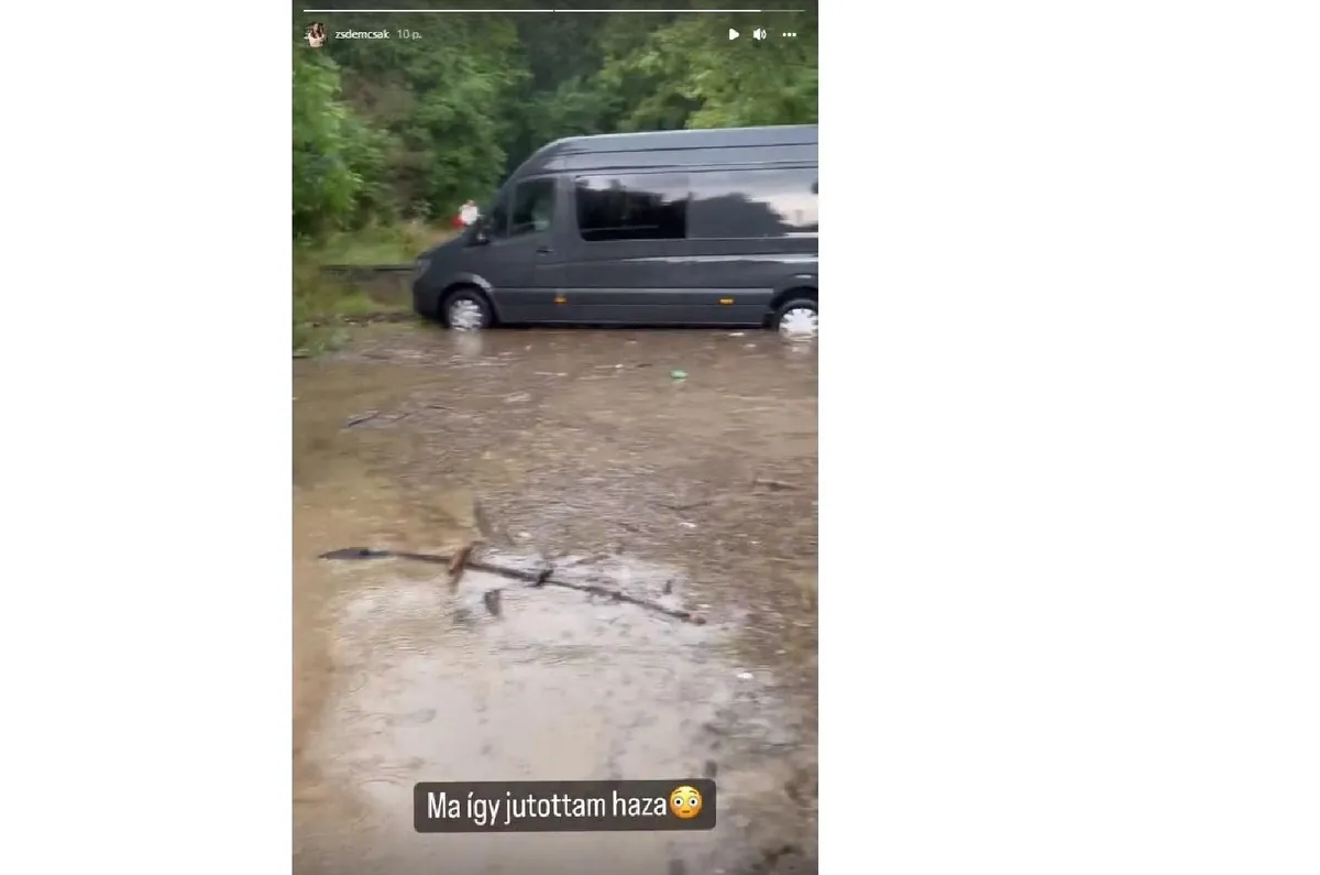Zsuzsa Instagram sztorijában egy rövid videóban mutatta meg, ahogy az utcát elöntő óriási vízben gázol. Láthatóan nem volt egyszerű feladata, meg kellett küzdenie az elemekkel. A parkoló autókhoz viszonyítva látható, milyen jelentős mennyiségű volt az utcát elárasztó víz, ami kukákat sodort el és mindenféle törmeléket úsztatott.