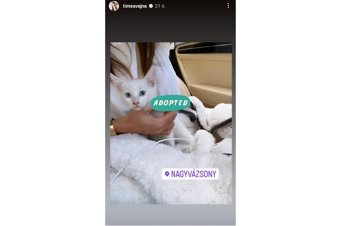 Vajna Tímea Instagram-oldalán számolt be róla, hogy örökbefogadott egy kiscicát. A hihetetlenül bájos hófehér cicussal nagymamáját lepte meg, aki elveszítette szeretett korábbi kiskedvencét.