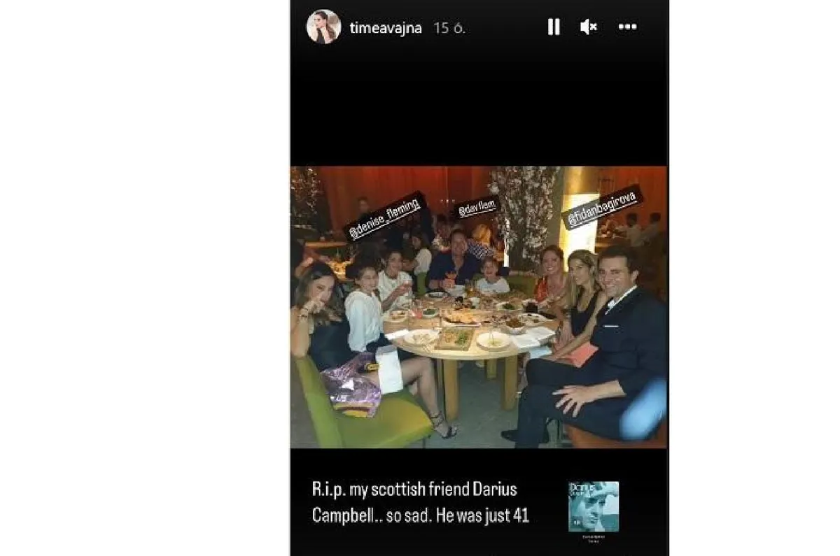 A hírességgel Vajna Tímea szoros barátságot ápolt, halálának híre lesújtotta őt. Instagram sztorijában kedden szívszorító sorokkal búcsúzott tőle: „Nyugodj békében skót barátom, Darius Campbell... Annyira szomorú. Csupán 41 éves volt” – írta.