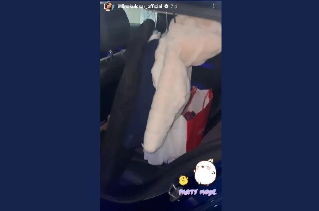Az egyik fotón az esküvői ültetési rend látható, melyet még az éjszaka folyamán véglegesített. A másodikon pedig első házasságából született gyermekei, Medox és Nina ünnepi öltözéke tündököl egy autó hátsó részének kapaszkodójára akasztva. A kis öltöny mellett azonban egy fekete ruhazsák is megfigyelhető, melyben minden bizonnyal Edina menyasszonyi ruhája lapul, szinte indulásra készen.