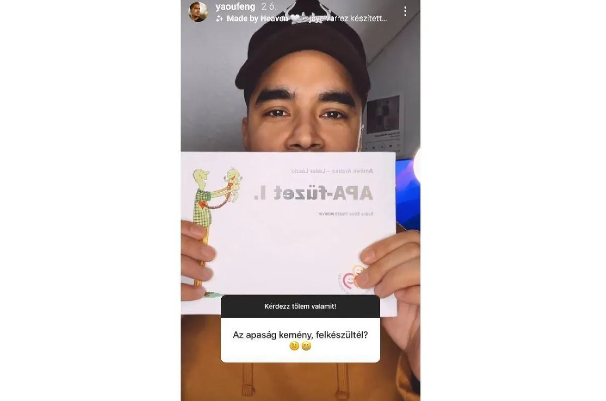 A büszke apuka azonban nem csak a kottát fogja tanulmányozni az elkövetkezendő időszakban, ugyanis feleségétől kapott egy Apa-füzetet, melyet 24 órán át elérhető Instagram-sztorijában meg is mutatott követőinek arra a kérdésre válaszolva, hogy „Az apaság kemény, felkészültél?”.