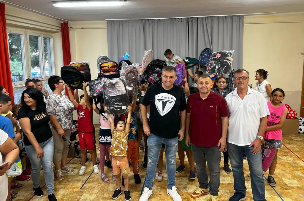 Iskolatáskákat és taneszközöket is adományozott Gáspár Zsolti a nagybárkányi diákoknak Szpisák Gyula képviselő meghívására.