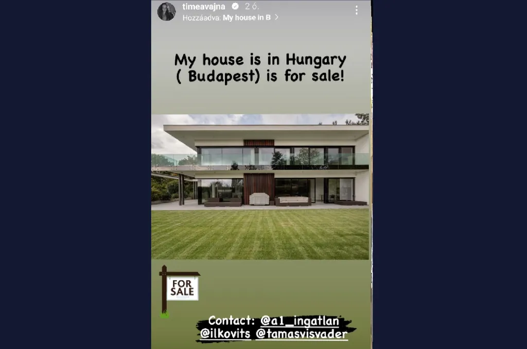 Kitért arra, hogy Andy Vajnával nem itt lakott, valamint a házat saját magának és jövőbeli családjának vásárolta még 2020-ban. Az év nagy részét azonban külföldön tölti, így nem éri meg fenntartania az ingatlant.