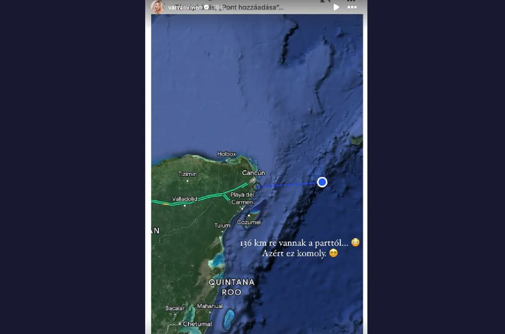 Több tíz kilométerre Kuba és Mexikó között vagyunk…Lehet látni, hogy egy lepedő az árbóca a hajónak…Vannak rajta 5-en, 6-an, ott integetnek