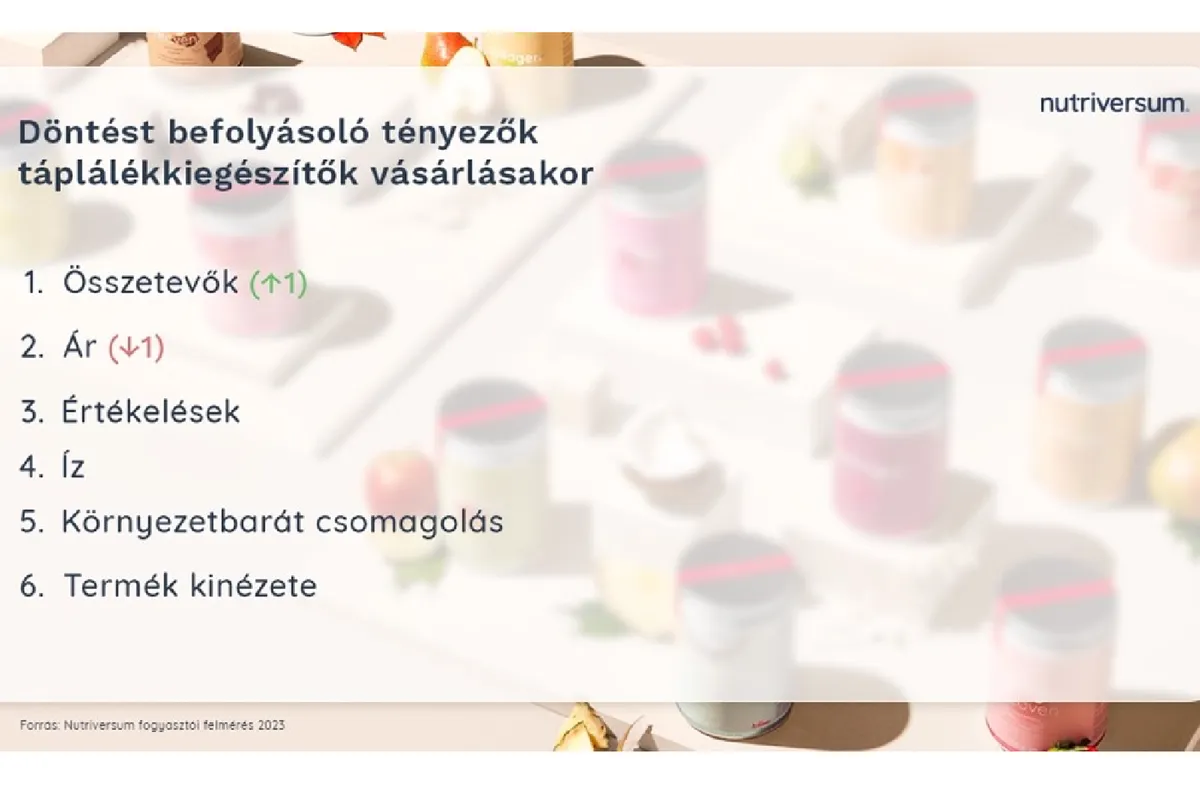 – mondta Fetter Ármin, a Nutriversum marketing vezetője, aki azt is elárulta, hogy a döntési tényezők listáján az összetételt és az árat a "vevői értékelések", majd "a termék íze" szempontok követik.