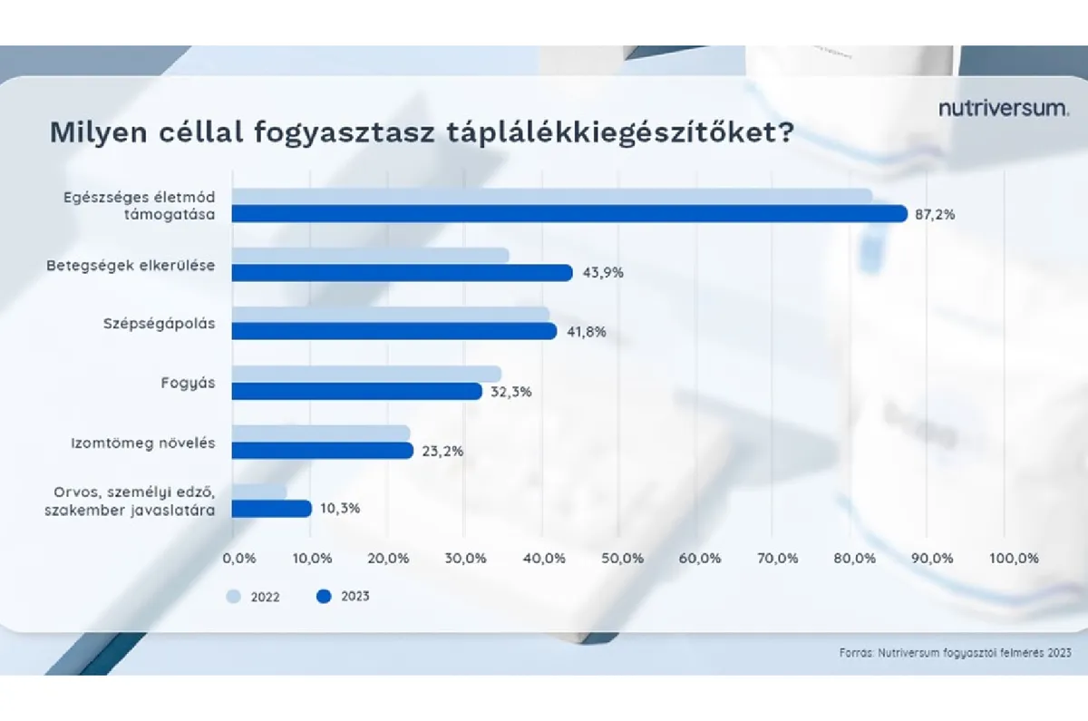 A megkérdezettek 87 százaléka az általános, egészséges életmód támogatása miatt fogyaszt ilyen termékeket. 44 százalékuk viszont a megbetegedések elkerülése érdekében, 42 százalékuk pedig szépségápolási célra alkalmazza őket.