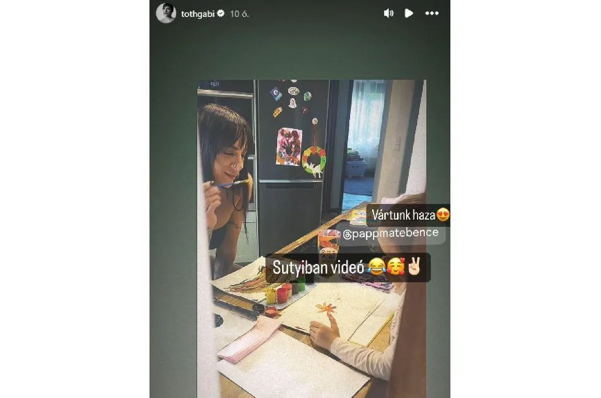 Gabi a minap egy lesivideót osztott meg 24 óráig elérhető Instagram-sztorijában, amelyen kislányával éppen kézműveskednek. A felvételt szerelme, Máté készítette róluk.