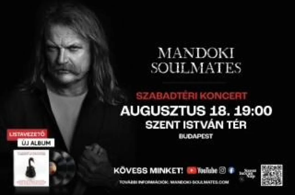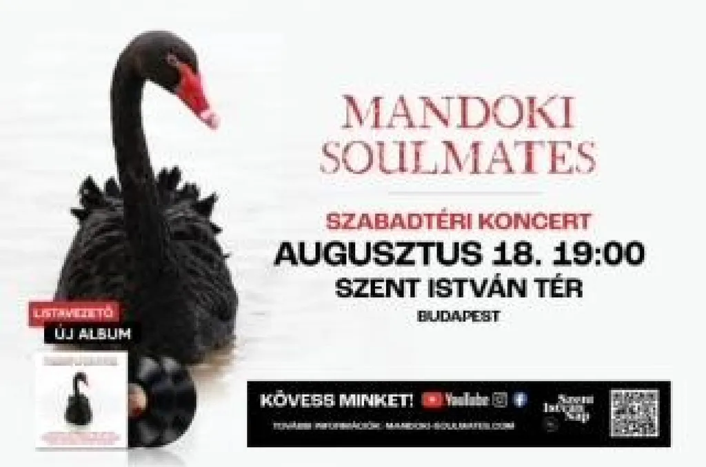 Örömmel jelentjük be, hogy Szent István ünnepe alkalmából Budapest szívében, a Bazilika előtti téren idén, augusztus 18-án 19:00 órától újra életre kel a többszörös platina- és aranylemezes Mandoki Soulmates muzsika. Az est folyamán a már megszokott varázslatos élmények mellett friss szerzeményekkel várják a rajongókat, ugyanis ezúttal a korábbi nagy dalok mellett bemutatásra kerülnek a Soulmates új korongjáról, A Memory Of Our Future-ról is a fülbemászó, fajsúlyos dallamok, igényes és világszínvonalú hangszerelésben.
