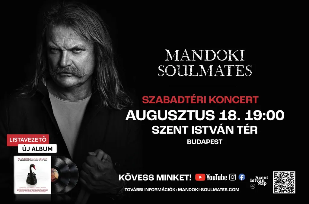 A Mandoki Soulmates együttes nem csupán zenei élményt nyújt, hanem egy mélyreható üzenetet is közvetít. Leslie Mandoki és zenésztársai elhivatottan dolgoznak azon, hogy a koncert során minden egyes hang és dallam a szabadság, a béke és az emberség eszméjét erősítse. Nem csupán egy zenei élményre számíthatunk, hanem egy ünnepre, ahol a művészet ÜGY és a zene tökéletes harmóniában fonódik össze a Bazilika lenyűgöző és pazar környezetében. A Mandoki Soulmates mindig is a progresszív rock és jazz elemeit ötvözve alkot zenei remekműveket, hidat építve a különböző kultúrák, nézetek és generációk között.