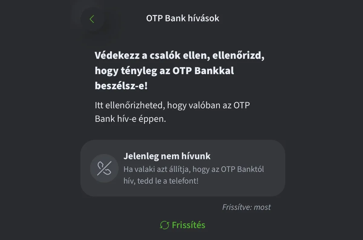 Most viszont az OTP Bank felvette a harcot az álhívások ellen és egy olyan új funkcióval szeretne segíteni ügyfeleinek, amivel akár egy kattintással is ellenőrizhetik, hogy egy hivatalos ügyintézővel beszélnek-e. Mindezt ráadásul akár telefonhívás közben, visszahívás nélkül is megtehetjük, ez viszont egyelőre csak az OTP MobilBankkal rendelkező ügyfelek részére elérhető. Az új fejlesztés eléréséhez a felhasználóknak csak meg kell nyitnia az alkalmazást, belépni a saját felületekre, majd a profilra, azaz a sarokban a saját nevük melletti ikonra kattintva megnézhetik, hogy valóban a hitelintézet munkatársával beszélnek-e – szúrta ki a Bank360.