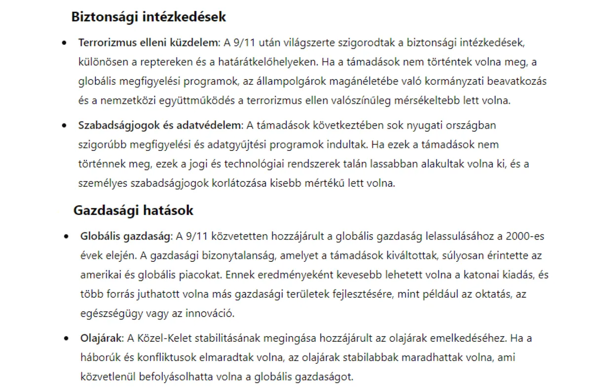 Az események drámai hatást gyakoroltak az amerikai és a világ történelmére, de emellett komoly változást okozott több olyan területen is, amik nélkül elképzelhetetlennek tartanánk a ma ismert világunkat. A tragédia huszonharmadik évfordulóján megkérdeztük a mesterséges intelligenciát, hogy a szeptember 11-i események – amiről néhány hete egy poros fiókban lapult, sosem látott videó is előkerült –hogyan változtatták meg az egész világot.