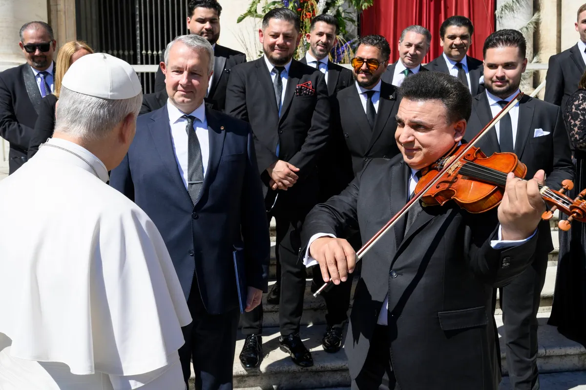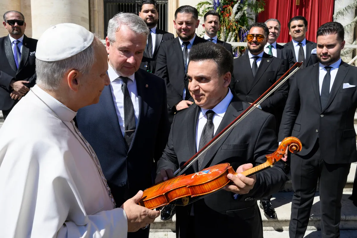 A találkozás alkalmával a művész egy különleges, „Guarneri del Gesù” ihletésű mesterhegedűt adott át ajándékba a Szentatyának, amelyet barátja, Rácz Pál hangszerkészítő mester készített. A hangszer a magyar hagyomány, a nemzeti összetartozás és az önzetlen adni akarás jelképe, amely méltó módon képviseli Magyarország kulturális örökségét.