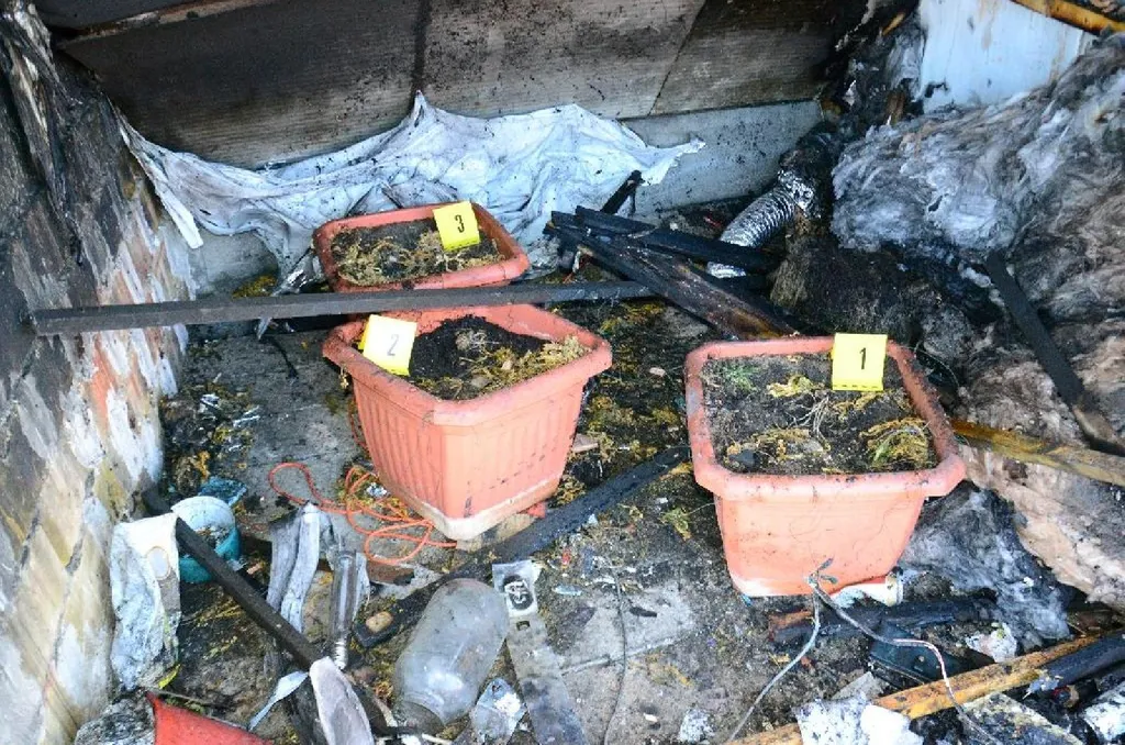 Ezeken kívül a növénytermesztéshez használatos eszközöket és anyagokat találtak a kiégett tetőtérben, illetve a ház épségben maradt helyiségében.