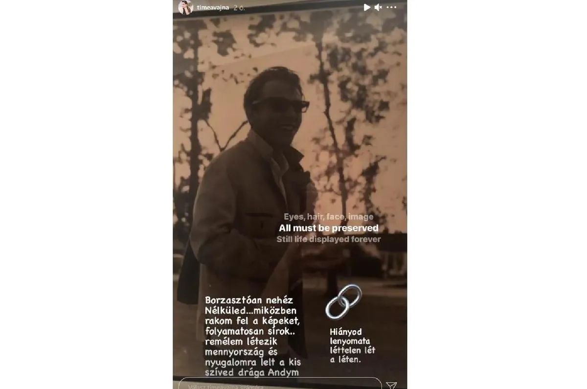 „Borzasztóan nehéz Nélküled... miközben rakom fel a képeket, folyamatosan sírok... remélem létezik mennyország és nyugalomra lelt a kis szíved drága Andym” – írta Vajna Timi egy fotóra, ami a fiatal Andy Vajnát ábrázolta.