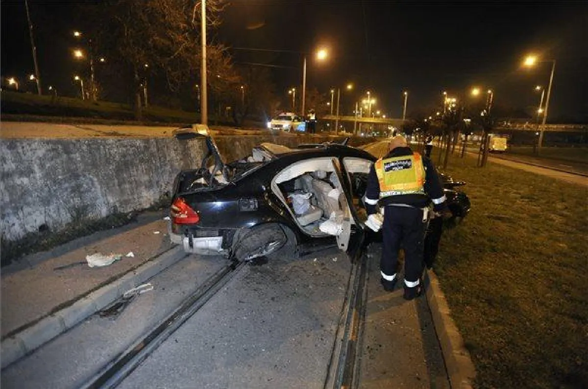 Az autó a villamossínekre a Róbert Károly körút és a Kacsóh Pongrác úti felüljáró kereszteződésénél hajtott fel. Az M3-as bevezetője felől az Árpád híd irányába haladt az autó mikor a körúti villamossínekre hajtott. Összeroncsolódott személyautó mellett rendőrök helyszínelnek.
