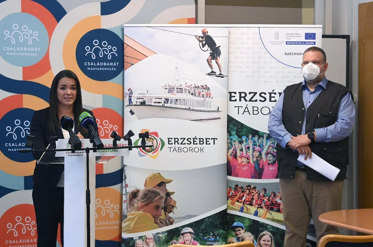 Novák Katalin azt mondta: tavaly a koronavírus-járvány miatt csak a napközis táborokban vehettek részt a gyerekek, idén viszont az oltás tömegessé válásának köszönhetően az ottalvós táborok is biztonságosan megszervezhetőek.