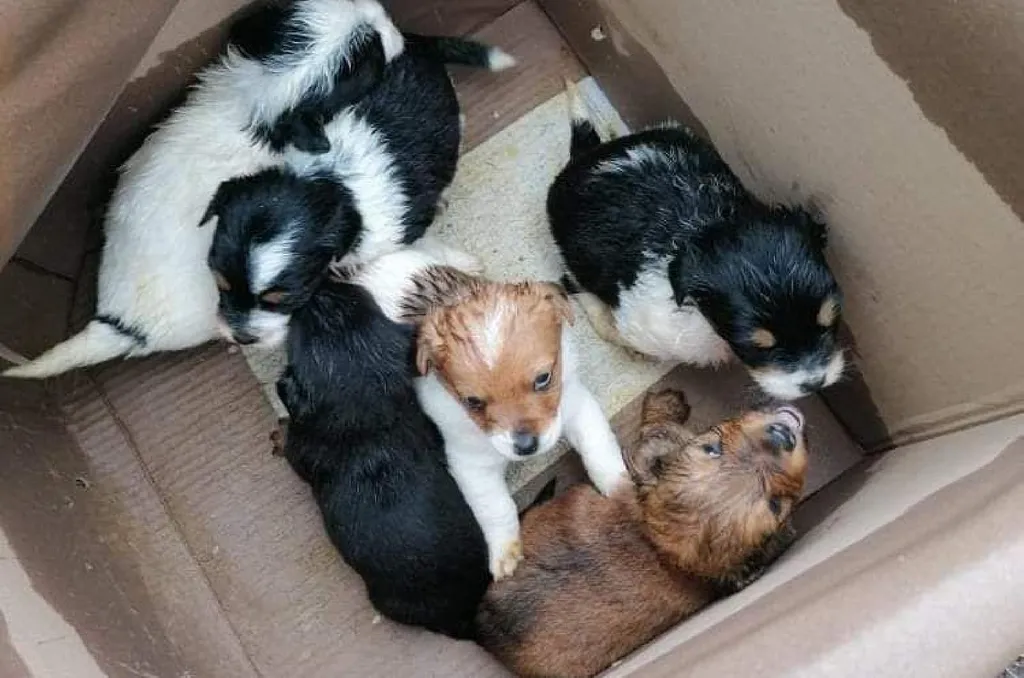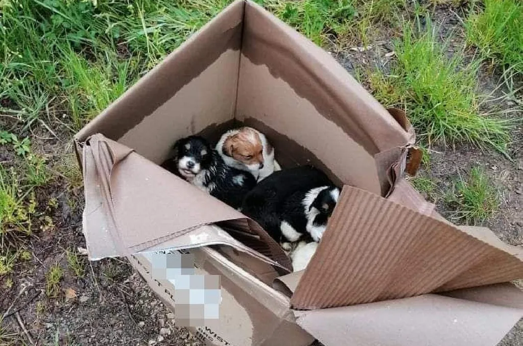 Szétázott kartondobozban találtak rá a kidobott kiskutyákra