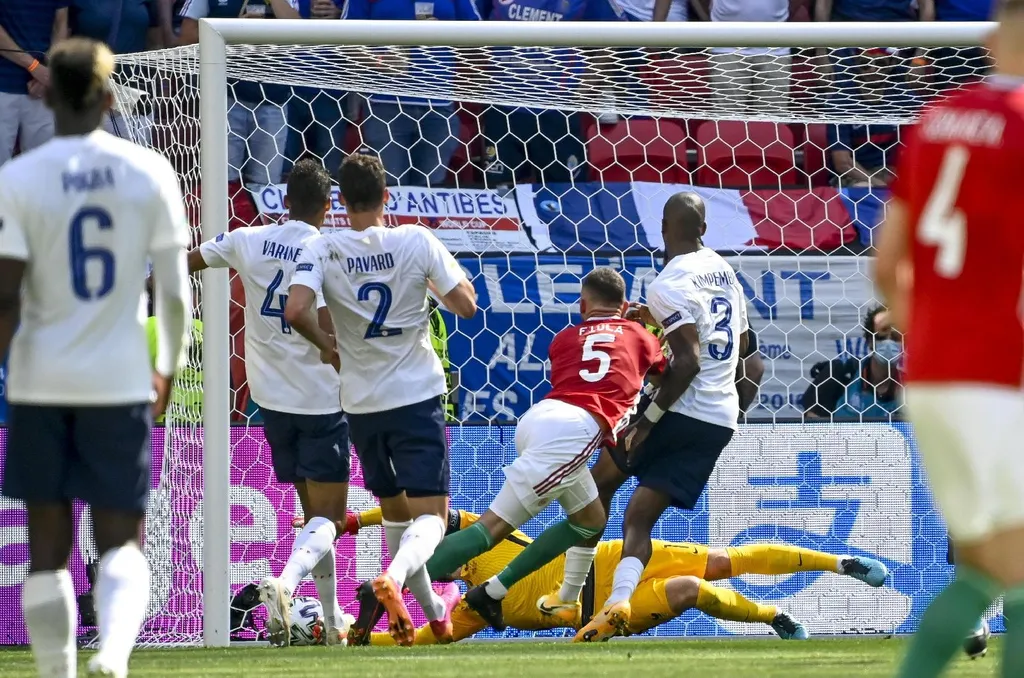 66. perc: Lloris hatalmas kirúgására Mbappé csapott le, két magyar védő között megtartotta a labdát, majd középre adott, ahol Orbán lábáról az érkező Griezmann elé pattant a labda, a Barcelona sztárja pedig kapásból a bal sarokba lőtt (1-1).