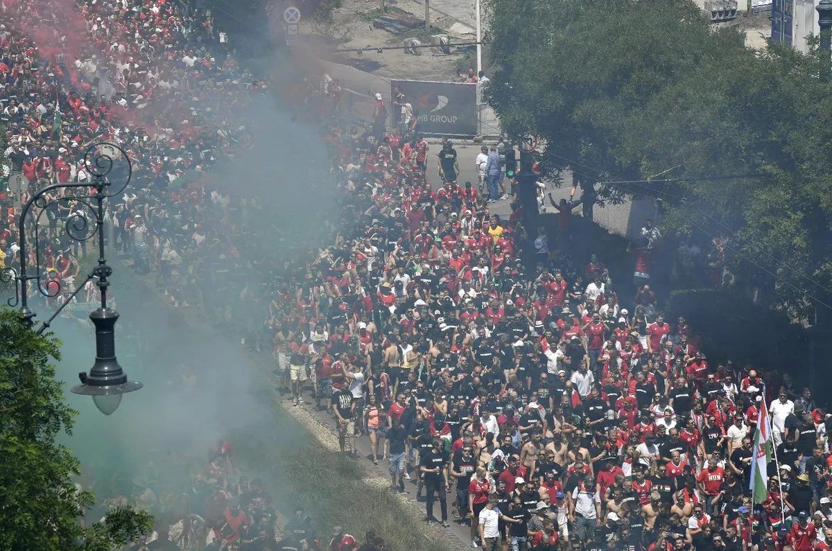Óriási tömegben vonulnak a magyar szurkolók - Fotók