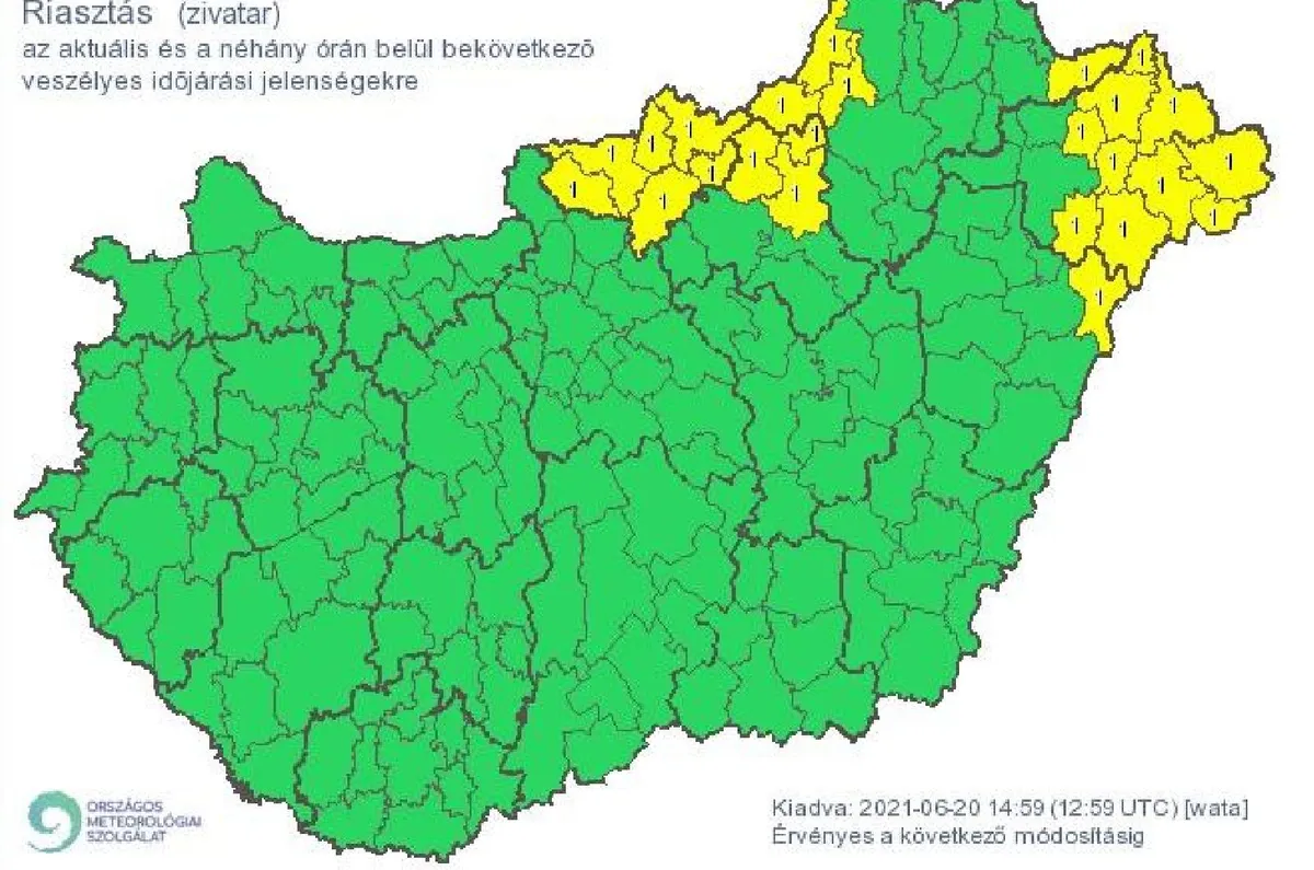 A közelgő zivatarok miatt riasztást adott ki az Országos Meteorológiai Szolgálat.