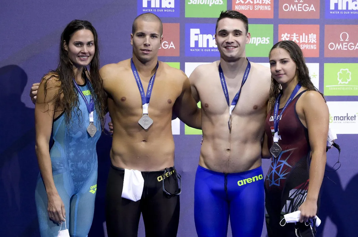 2. Magyarország (Szabó Szebasztián, Milák Kristóf, Pádár Nikolett, Jakabos Zsuzsanna) 1:32.44