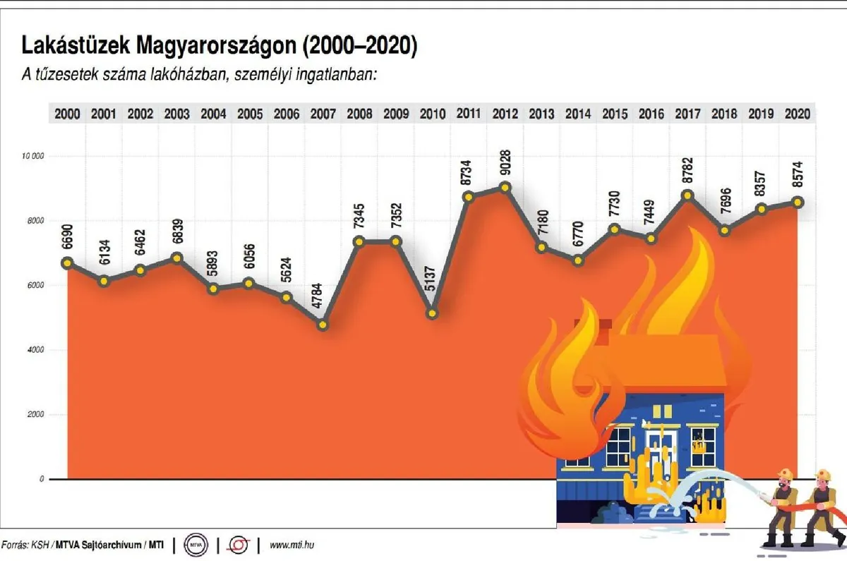 A katasztrófavédelem összesítése szerint az év harmadik negyedévében kevesebb lakástűz volt, mint az elsőben és a másodikban. Az év első kilenc hónapjában 5176 otthonban csaptak fel lángok. Csaknem 70 ezer négyzetméternyi otthon égett le, akkora terület, mint az egyik legnagyobb budapesti pláza - jegyezte meg a szóvivő.