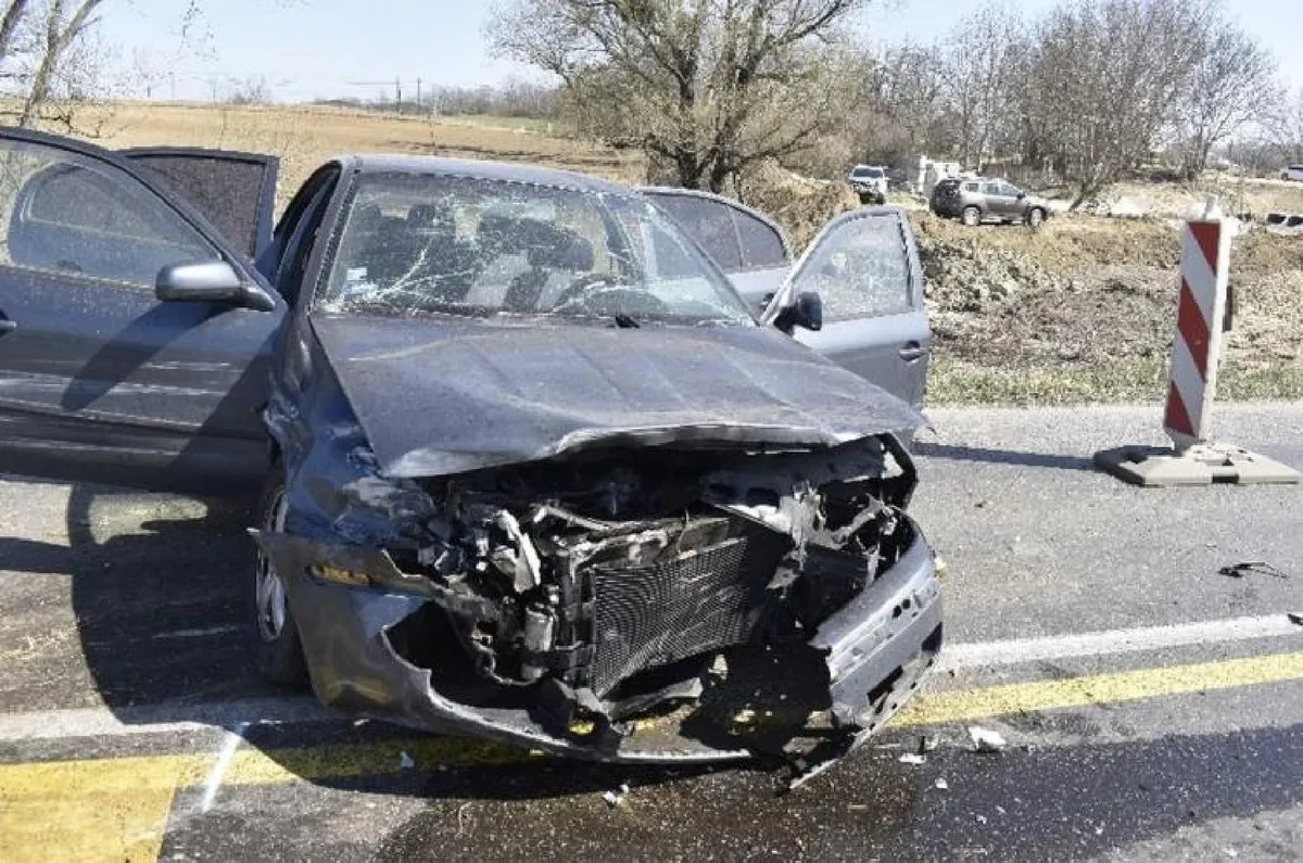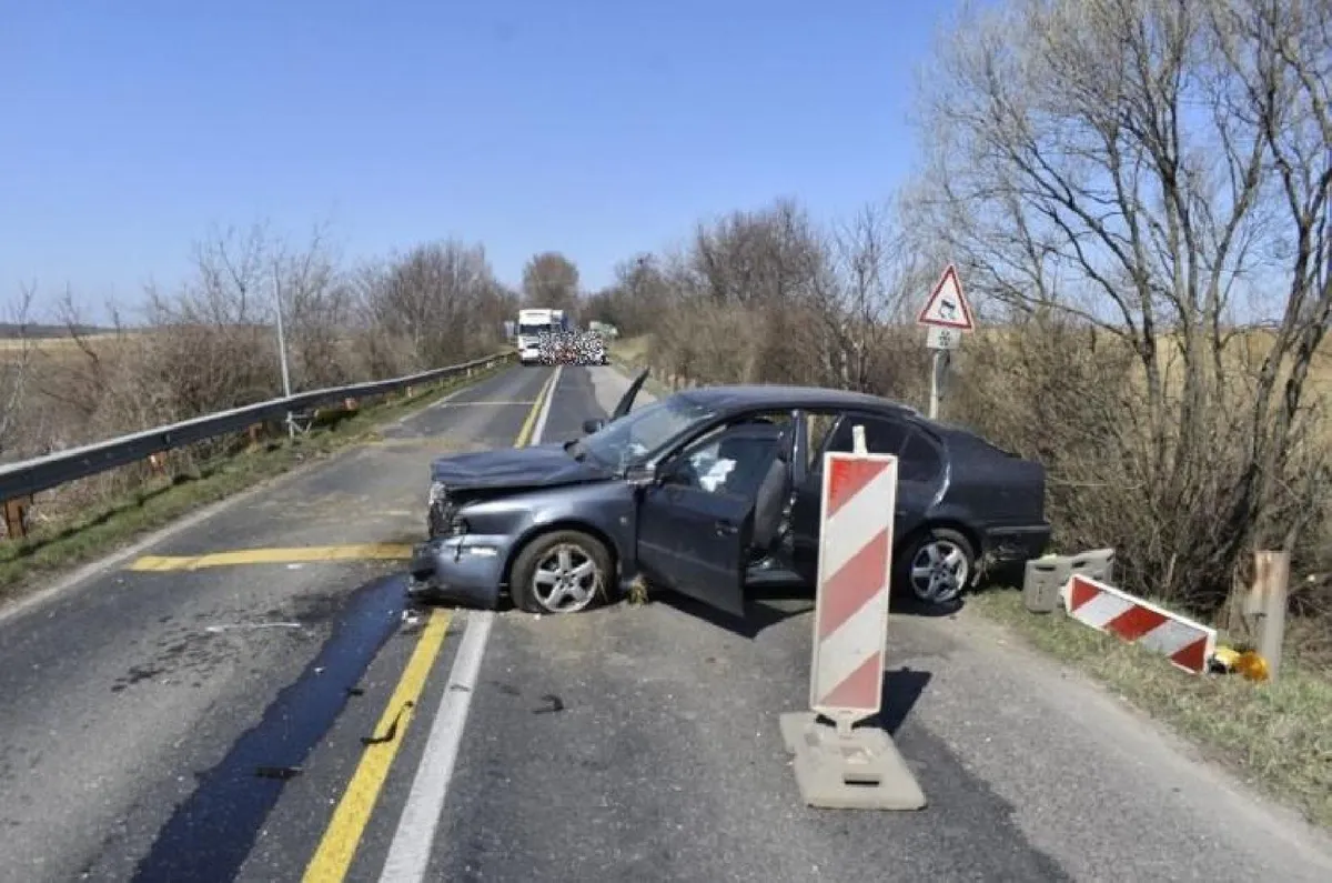 A 82-es számú főútvonalon, Győr felől Veszprém irányába közlekedett utasának kocsijával egy győrszentiváni nő március 25-én 11 óra körül. Ravazd külterületéhez érve az „Előzni tilos!” táblát figyelmen kívül hagyta, a záróvonalat átlépte, és az előtte haladó kocsioszlop előzésébe kezdett. Manővere során azonban elvesztette uralmát járműve felett, és az utat szegélyező szalagkorlátnak, majd a kihelyezett közlekedési táblákat tartó oszlopnak ütközött – közölte a rendőrség.