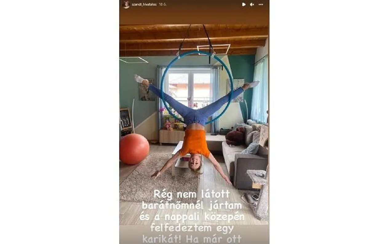A csodálatos formában lévő, mindig vidám Szandiról tudjuk, hogy nem riad meg a magasságtól, és egyáltalán nem zavarja, ha a magasból fejjel lefelé lóg. Az énekesnő 2018 óta a légtorna szerelmese, már négy éve űzi a veszélyes sportot.