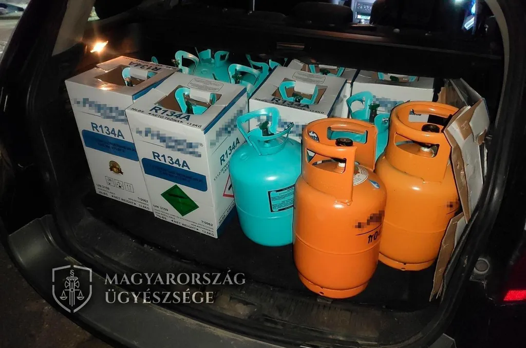 Az ügyészség több mint 40 hűtőközeget tartalmazó klímagázpalackot, kazán-, és légkondicionáló berendezéseket, megközelítőleg 200 ezer eurót és több mint 5 millió forint készpénzt, valamint több ezer doboz zárjegy nélküli cigarettát foglalt le.