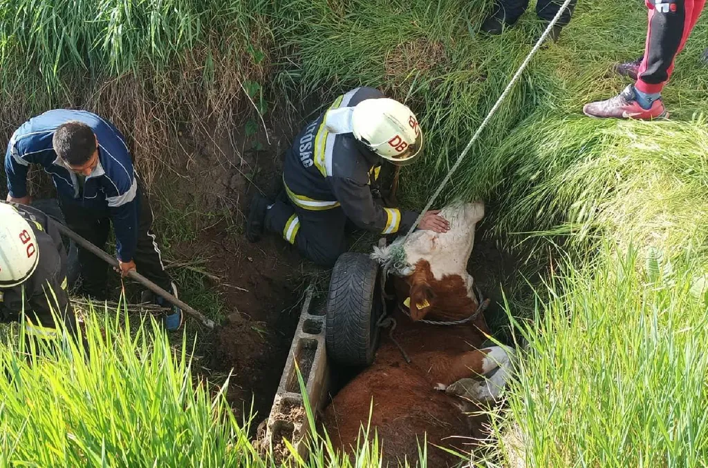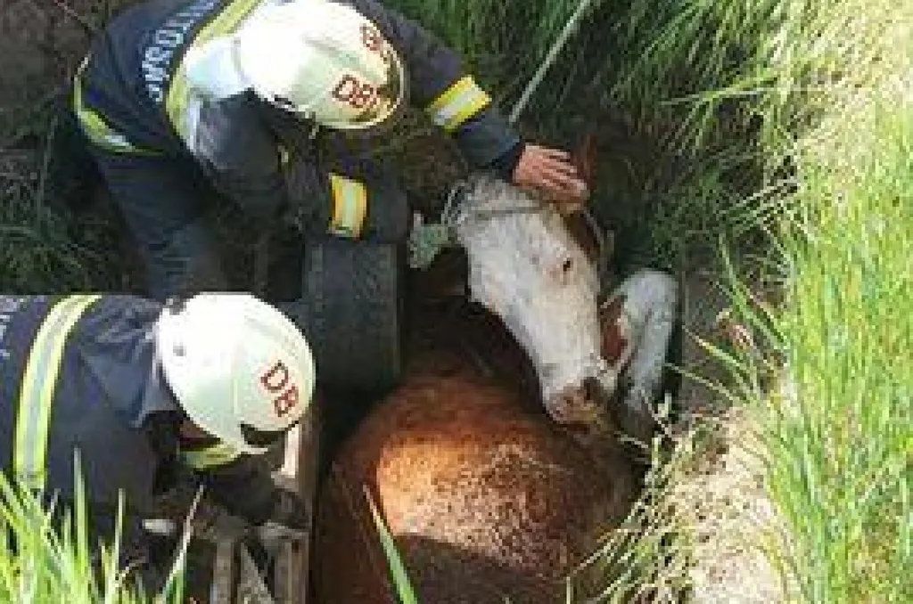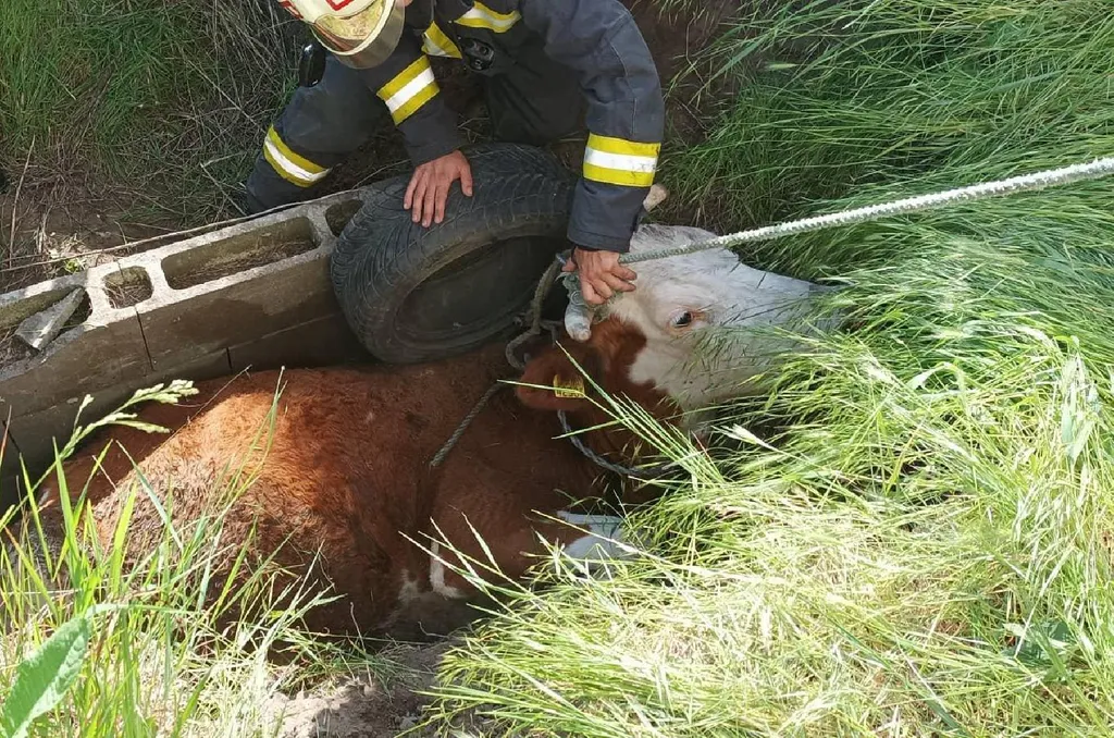 Két és fél méter mély aknából mentettek ki egy több mázsás tehenet a lelkiismeretes tűzoltók.
