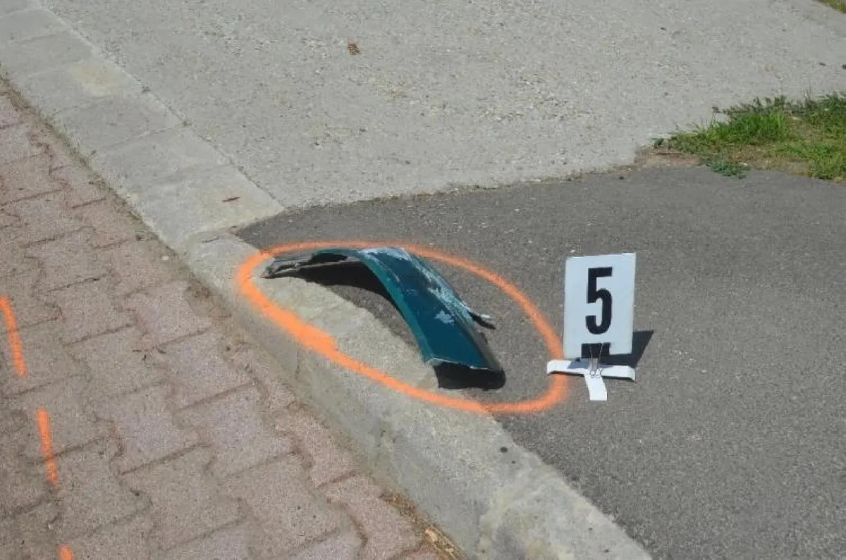 A baleset során a „vétkes” sötétzöld Mercedes lökhárítójából kitört egy darab, a szemtanú elmondása szerint egy férfi volt a sofőr.