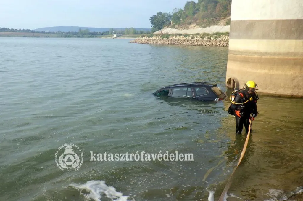 A járműben nem tartózkodott senki, a parttól nagyjából húsz méterre a kerekein állt meg, a teteje kilátszott a vízből - számolt be róla a katasztrófavédelem.