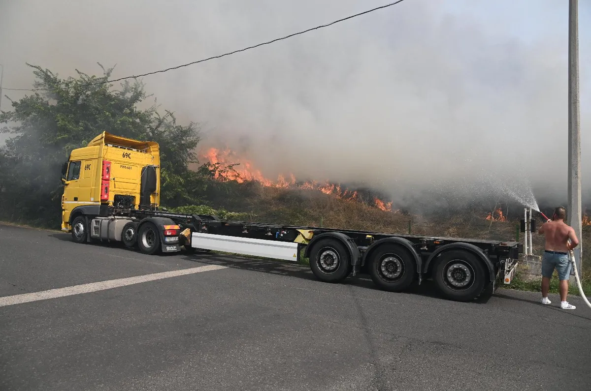Az aljnövényzet mellett bozótok és fák is lángra kaptak. Az oltást nehezíti a hőség és az, hogy a terület tagolt, csak földutakon megközelíthető - közölte a szóvivő.