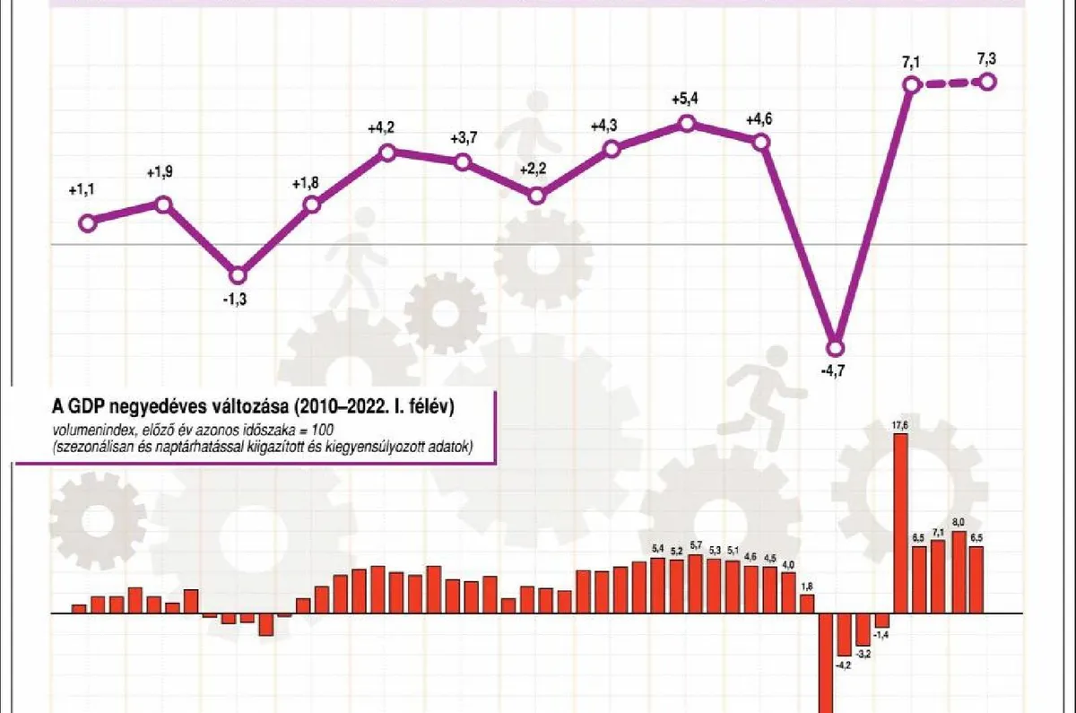 Számítása szerint a járvány előtti szintet mintegy 7,2 százalékkal haladja meg a hazai GDP. A vártnál nagyobb növekedésnek köszönhetően nem zárta ki, hogy a bankholding kissé felfelé módosítja az idei GDP-növekedésre vonatkozó 5,7 százalékos prognózisát, bár a következő negyedévekben már érdemi lassulást várnak, részben bázishatások, részben a háború negatív következményei miatt.