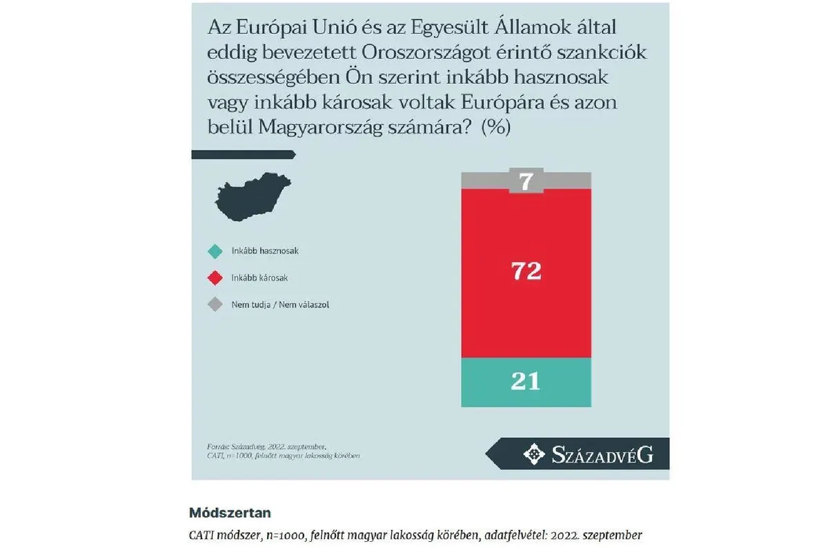 A szankciós politika Európára gyakorolt negatív következményei tükröződnek a lakossági véleményekben is, ugyanis a megkérdezettek 72 százaléka – Európára és benne Magyarországra nézve – összességében inkább károsnak tartja az Európai Unió és az Amerikai Egyesült Államok által eddig bevezetett, Oroszországot érintő szankciókat, ezzel szemben 21 százalékuk inkább hasznosnak gondolja az említett intézkedéseket.