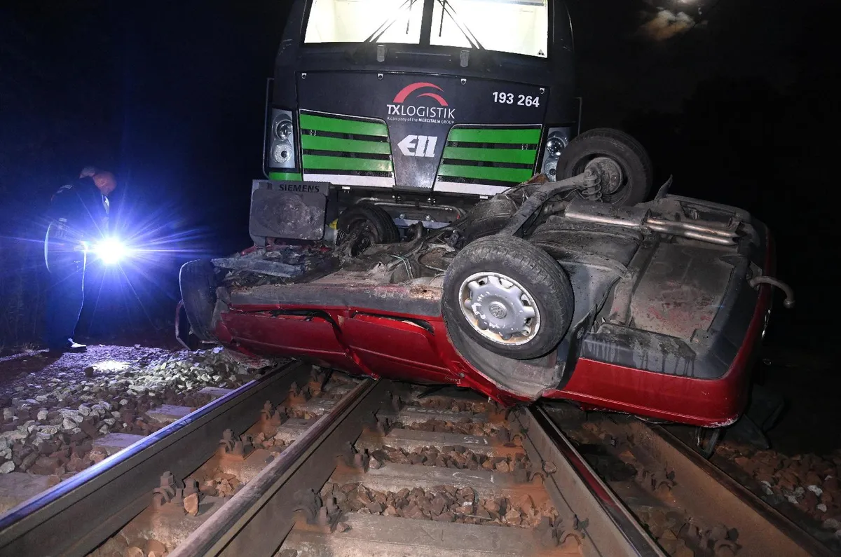 Az Országos Katasztrófavédelmi Főigazgatóság az MTI-t arról tájékoztatta, hogy a tehervonat több száz méteren keresztül tolta, majd maga alá gyűrte a járművet.
