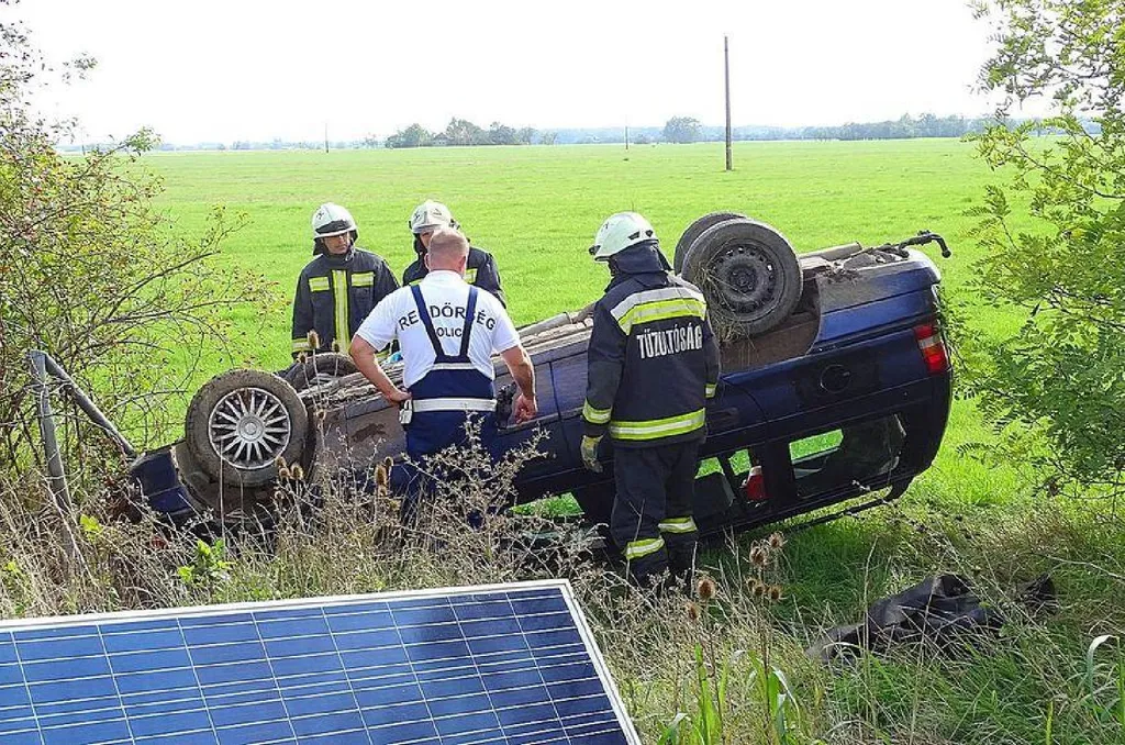 Felborult egy fiatalokkal teli autó Hódmezővásárhelynél, fotókon a baleset