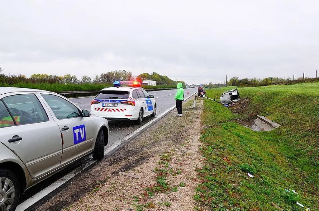 Árokba borult egy kisbusz az M5-ösön – helyszíni fotók érkeztek a balesetről