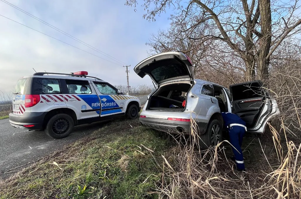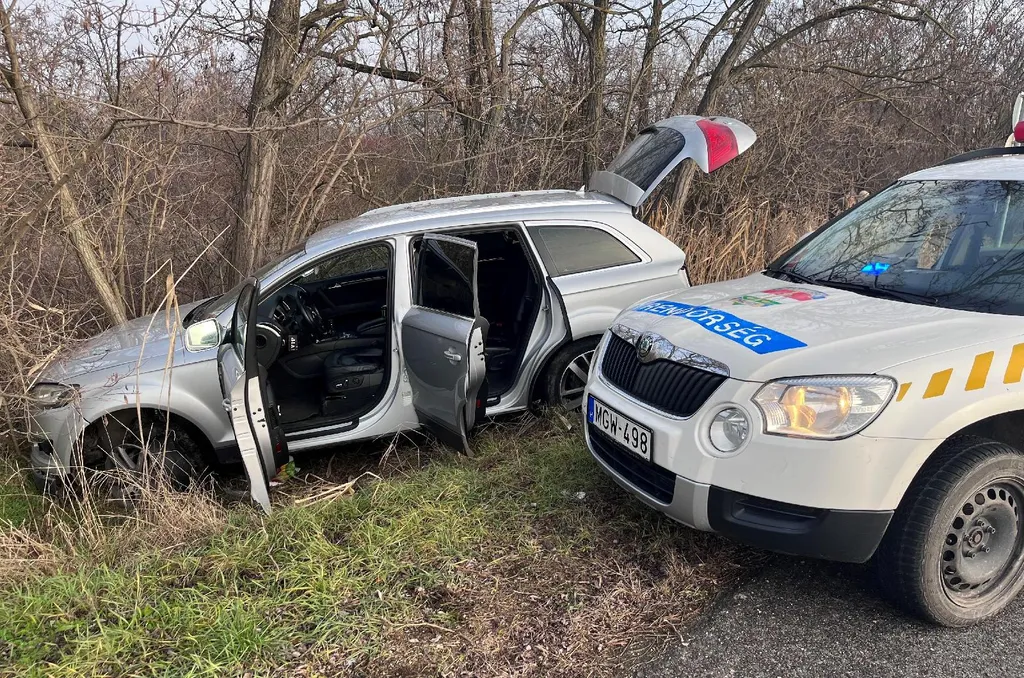 A migránsokkal teli autó végül egy árokban kötött ki Jánossomorján.