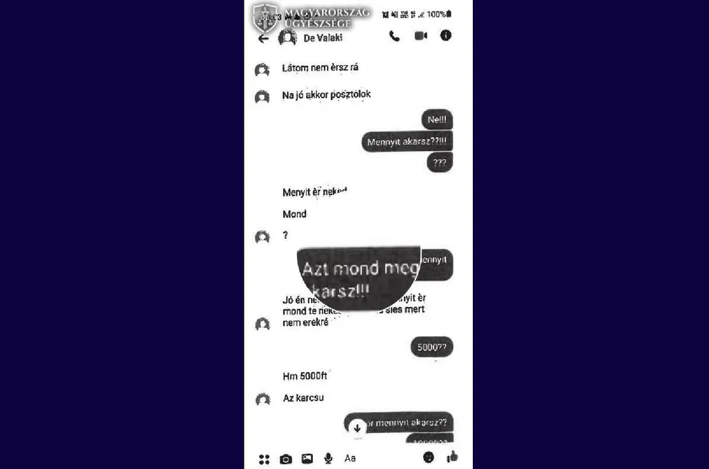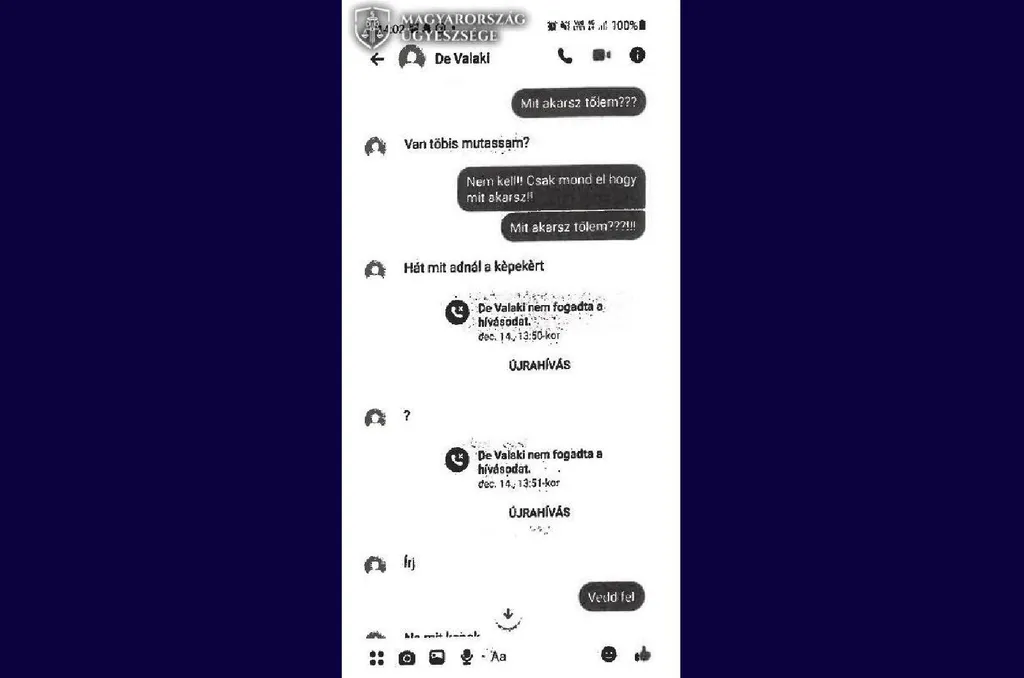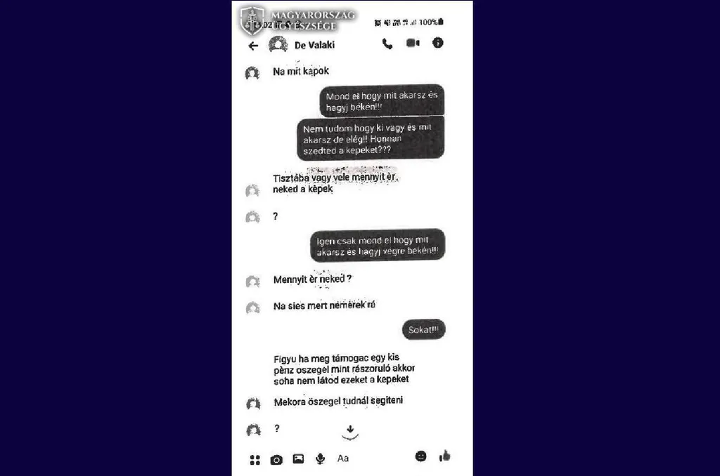 Ezt követően létrehozott egy álprofilt a „De Valaki Senki” néven, majd üzeneteket küldött a lánynak, miszerint meztelen fotókat tárol róla és amennyiben nem akarja, hogy ezek nyilvánosságra kerüljenek, fizessen 250 ezer forintot.
