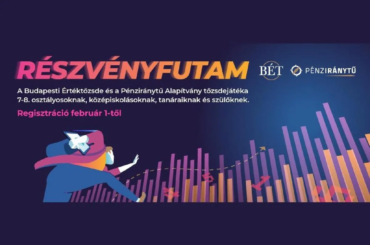 Március 6-án indul a Budapesti Értéktőzsde és a Pénziránytű Alapítvány közös tőzsdejátéka, a BÉT Részvényfutam. A 19 kereskedési napon át zajló ingyenes virtuális versenyre idén a középiskolás diákok mellett immár a 7-8. osztályos tanulók, valamint tanáraik és szüleik is jelentkezhetnek, és tehetik próbára tőzsdével kapcsolatos tudásukat. A résztvevők a valós tőzsdei kereskedési idő keretében, a BÉT-en jegyzett részvényekkel, valós idejű árfolyamok mellett, 2 millió forint értékű virtuális tőkével kereskedhetnek. Ezenfelül a leendő tőzsdecápák naponta három kvízkérdést válaszolhatnak meg, amellyel tovább növelhetik portfóliójuk értékét.