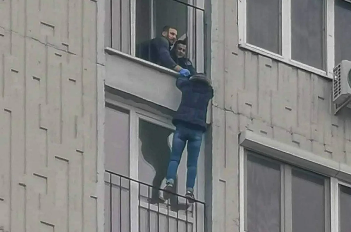 Az asszony a korlátba kapaszkodva lógott lefelé a 45-50 méteres magasságból. A két rendőr azonnal elkapta a csuklóját, és megpróbálták visszahúzni, de ő minden erejével próbált ellenállni, rángatózott, hogy lezuhanjon.