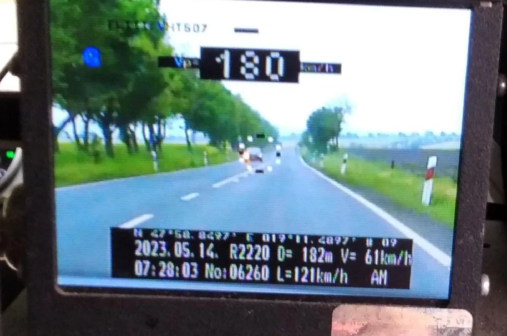 Pár nappal később, május 14-én reggel a 22-es számú főúton ellenőrizték a forgalmat a rendőrök, amikor az útszakasz 6-os kilométerszelvényében mérték be azt a sofőrt, aki a megengedett 90 helyett 180 kilométeres sebességgel száguldott a szolgálati autóval szemben.