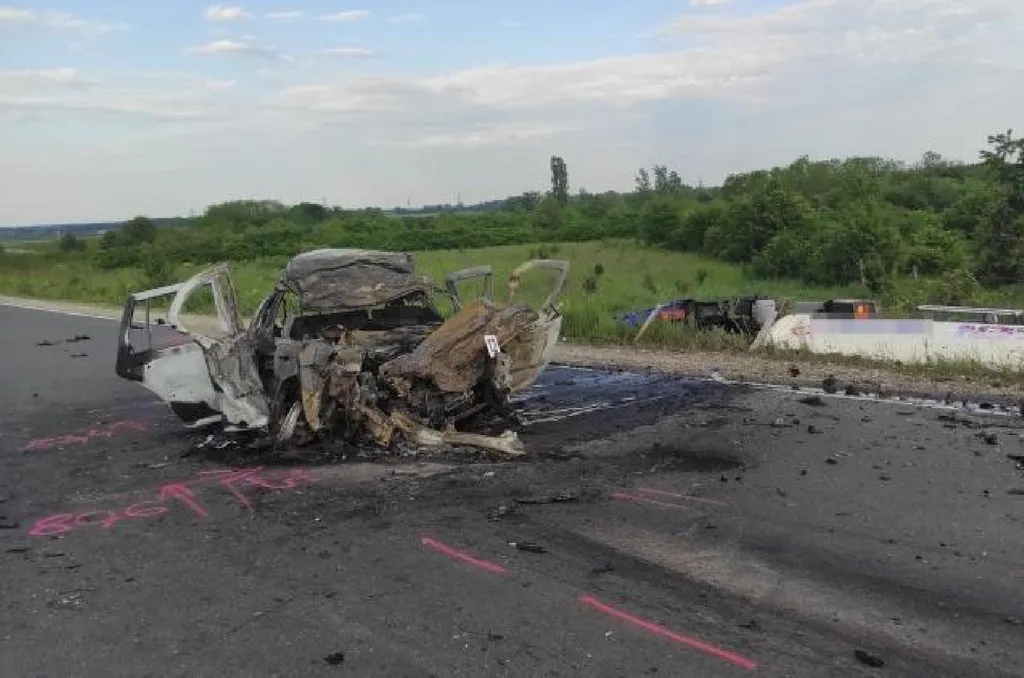Az ütközés következtében a kamion az árokba hajtott, az autó pedig kigyulladt. Két utasa meghalt.