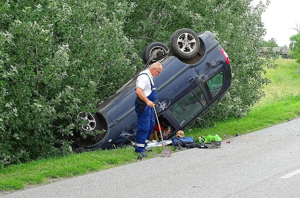 Mindkét kocsi megsérült, az egyik az árokba borulva, a feje tetején állt meg.