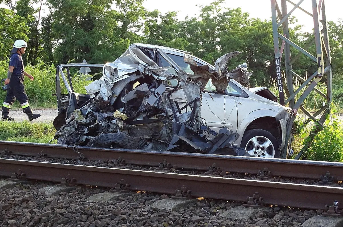 A síneken ragadt egy pótkocsi Komáromnál, vérfagyasztó videó készült a balesetről