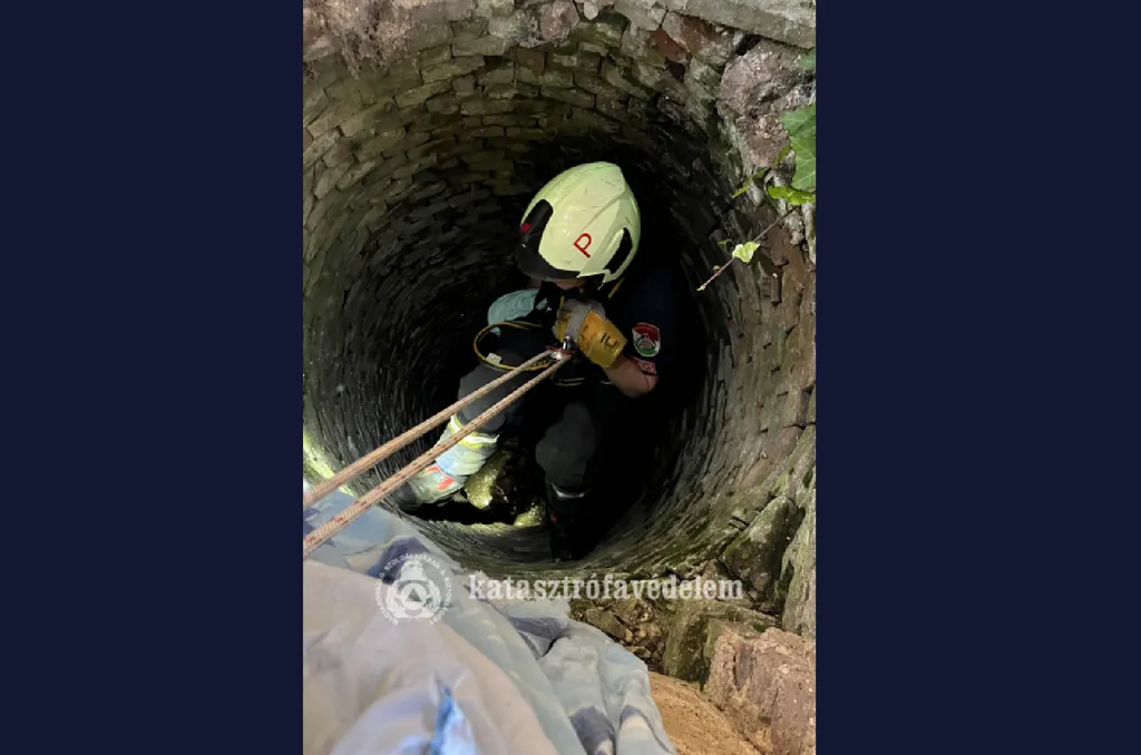 Kútba zuhant egy macska Pécsen, fotókon a mentőakció