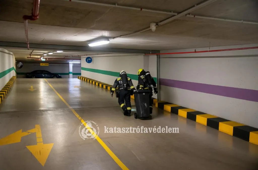 A Blaha Lujza tér közelében lévő bevásárlóközpont és szálló közös parkolójában akkumulátorok gyulladtak ki. Az egységek kiérkezéséig a garázs beépített tűzoltó rendszere megfékezte a lángokat.
