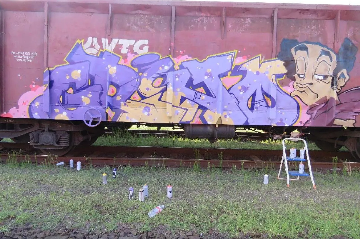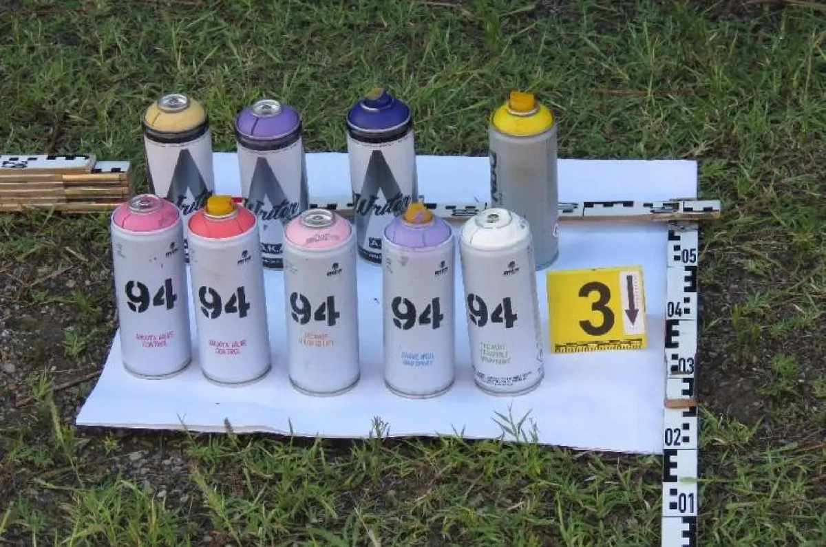 Az egyenruhások néhány perc elteltével a helyszínre értek, ahol a vagonok mellett körülbelül 20 flakon szórófestéket, míg a bokrok között egy férfit találtak.