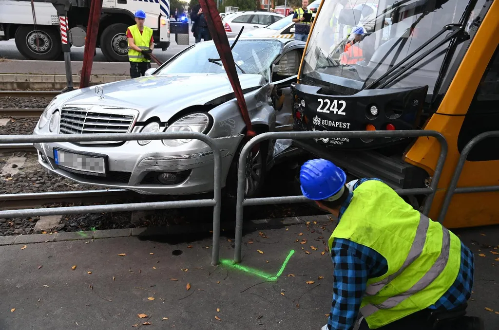 Csúnya balesetet vettek videóra Budapesten, egy Mercedes és egy villamos találkozott